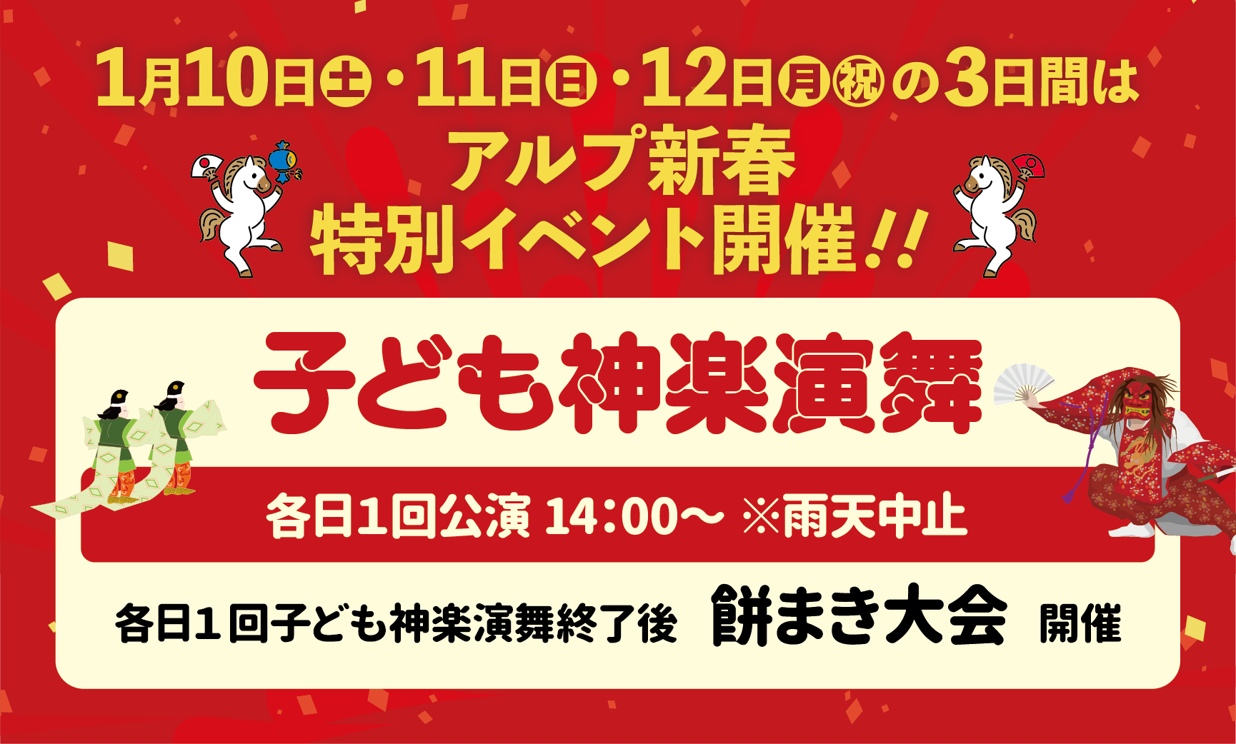 1月10日、11日、12日と3日連続!!ALPわさだハウジングタウンにて【子ども神楽&餅まき大会】を開催予定です!