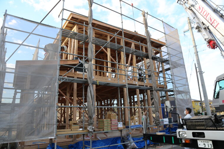 家づくりにおいて、棟上げはお施主様にとって最も感動的な瞬間のひとつ。図面上の住まいが初めて形を成す、非常に身が引き締まる一日です。