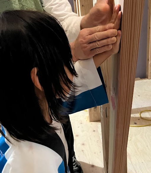 今回もお施主様ご家族に、この家で一番最初に立てられた柱へ一筆入れていただきました。真っさらな柱に、家への願いを力強く書き込んでいく姿は、見ていて本当に胸が熱くなる光景です。仕上げは、ご家族全員で手形をペタッ!とスタンプ。 お子様の小さな手形が並ぶと、現場の空気もパッと和やかになります。ご家族の笑顔が弾けた瞬間がとても印象的でした。