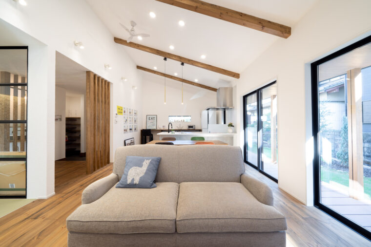 平屋の開放的な空間に、自然素材の澄んだ空気が広がるSAKAIPARK。一歩足を踏み入れるだけで、深呼吸したくなるようなリラックス空間が広がっています。