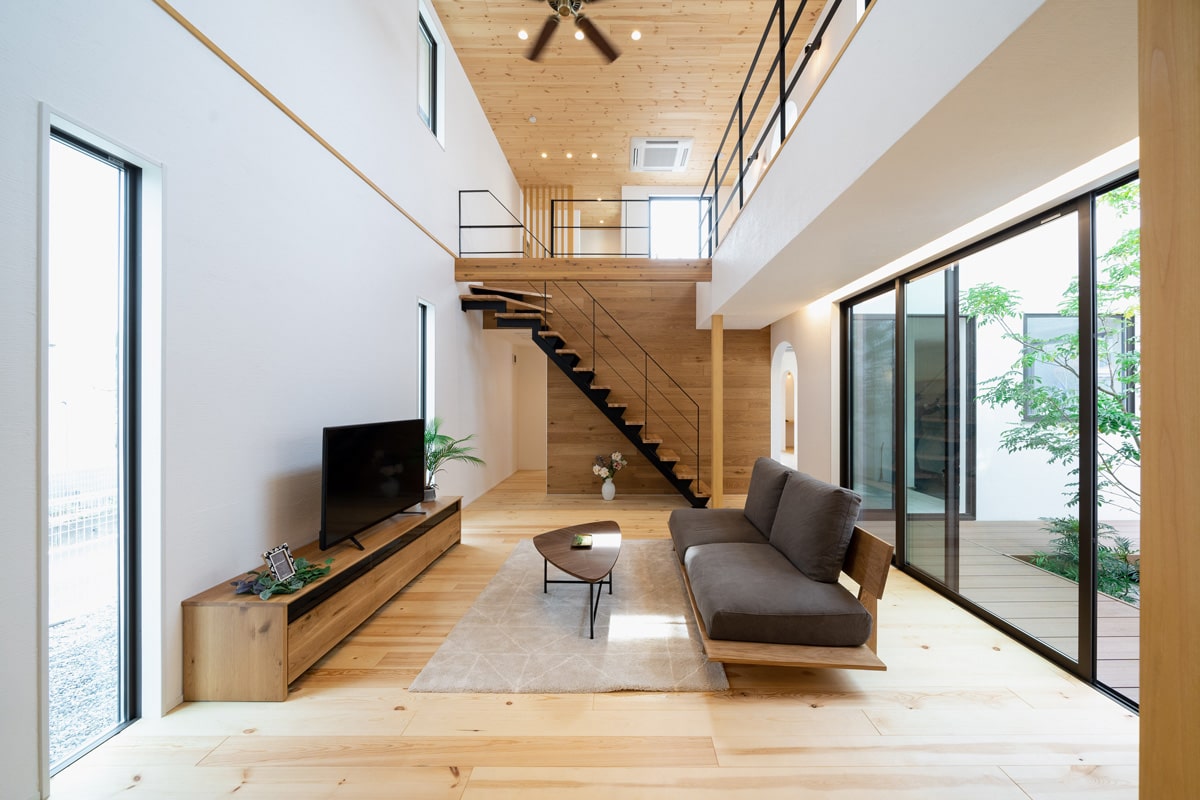 リビングを広く見せるためには、視線の抜け感や天井の高さを活かした設計、家具選びの工夫などを組み合わせることが大切です。