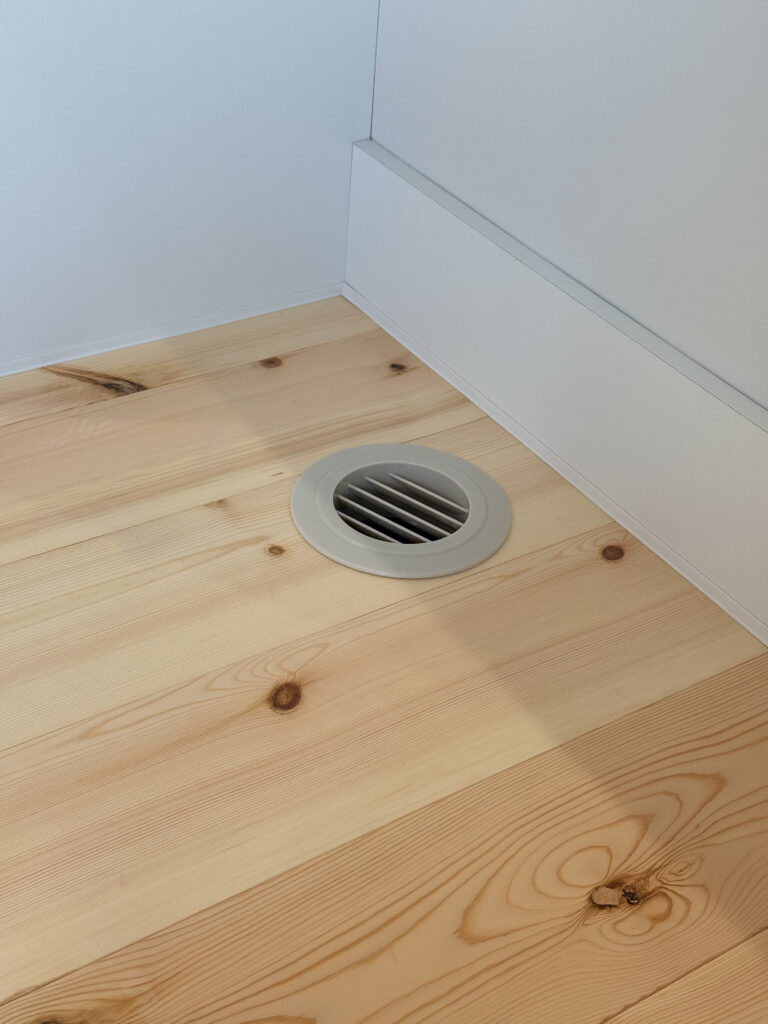 ■無添加漆喰の壁と、無垢ロシアンパインの床。