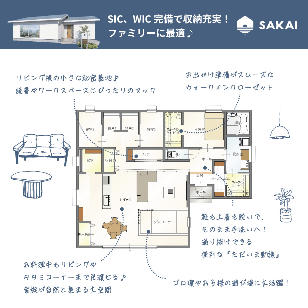 SIC、WIC完備で収納充実!ファミリーに最適♪
