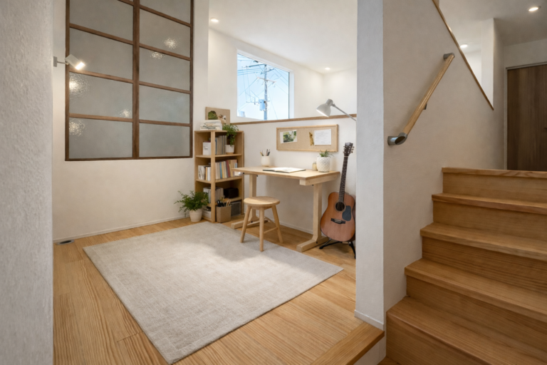 スキップフロアは書斎、スタディスペース、くつろぎスペースなど暮らしに合わせて多目的に使えます。