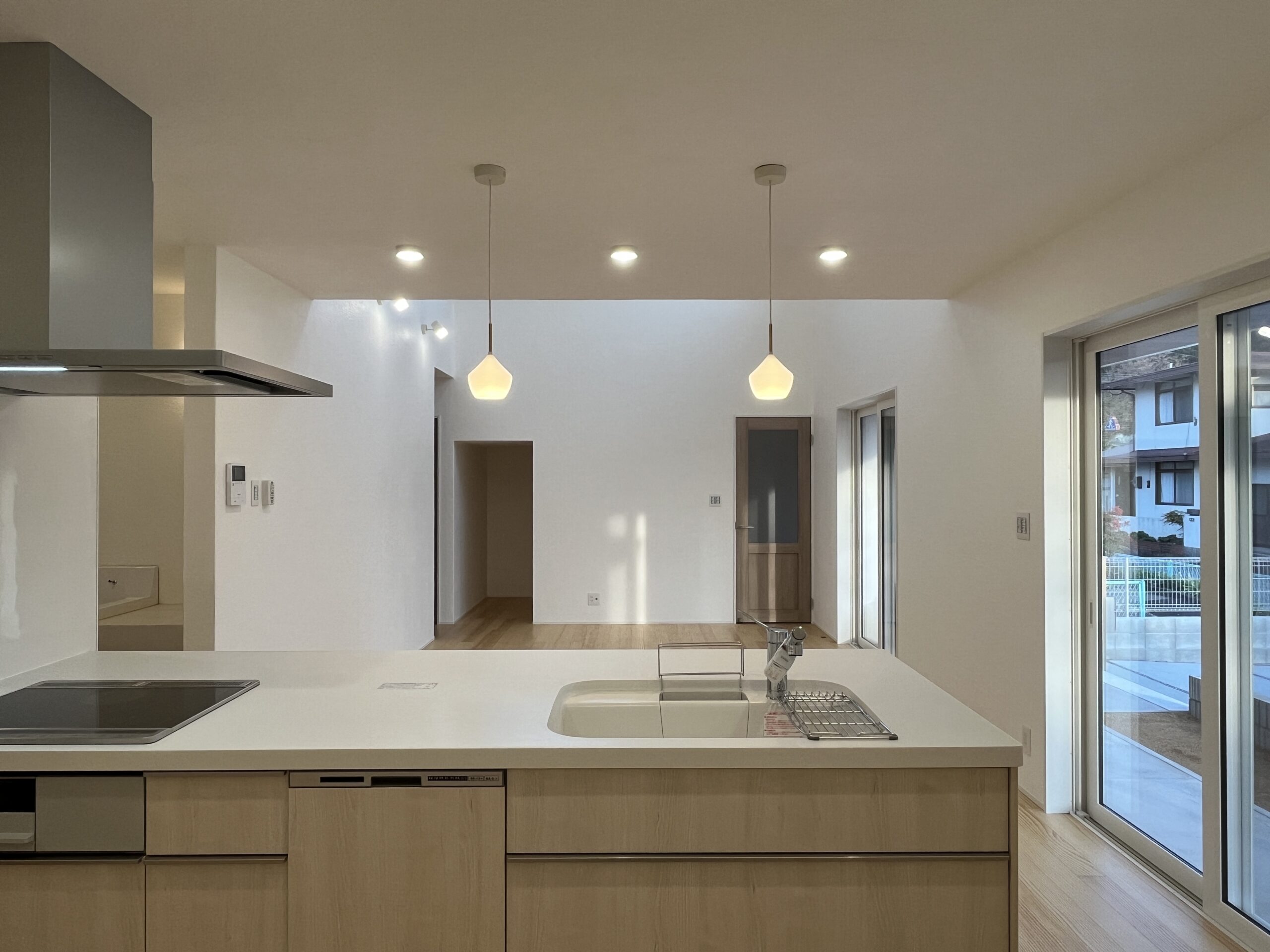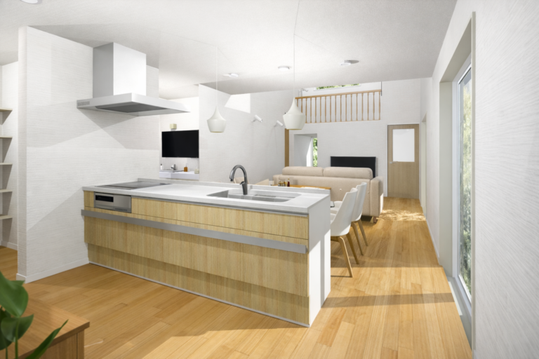 毎日の動線と暮らしやすさを考え、1階に生活の中心を集約した2階建ての住まい。