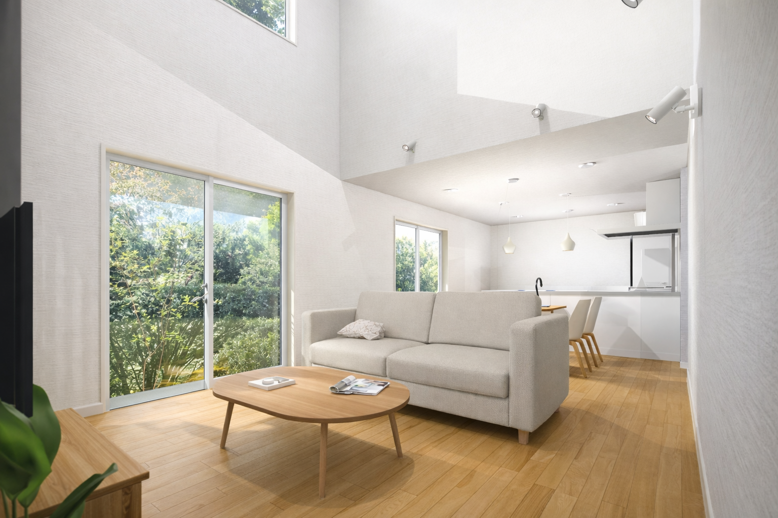 室内はLDKの一部は吹き抜け、そして3帖のスキップフロアを設置してより明るく開放的な空間に!