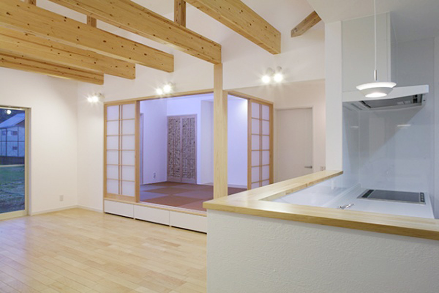 『家を建てるなら絶対に平屋建てがいい』という旦那様と『広くて解放感があり収納が多くてナチュラルで明るい家がいい』という奥様の希望をできるだけ叶えたお家です。