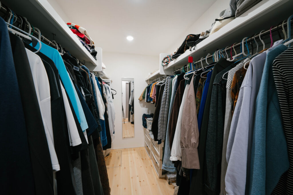 ファミリークローゼットやパントリーによって収納力を高めたほか、玄関、トイレ、畳コーナーには造作棚を設置。新たに家具を置く必要がないので統一感があり、空間も最大限に広く使えます。