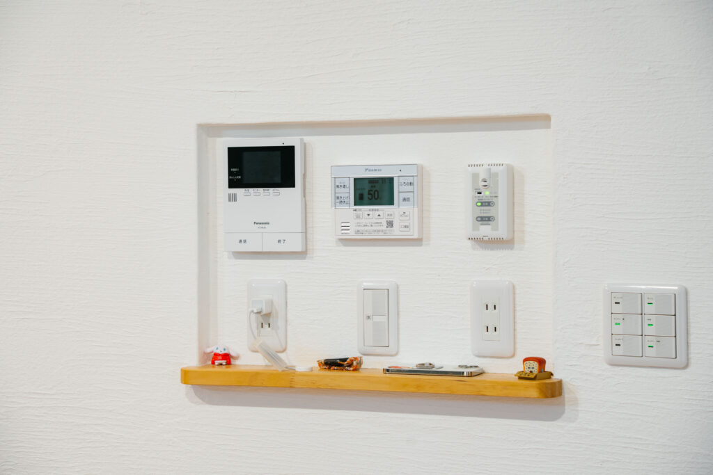 取り入れてよかったもののひとつとして挙げてくださったのが、キッチン背面を全面マグネットボードにしたこと。写真やメモなどをおしゃれに貼って、便利に活用できているそうです。また、インターホンや給湯リモコン、電気スイッチなどを全てニッチにまとめているので、使い勝手とデザイン性を両立。「こういった細かい部分までしっかり配慮した提案をしてくださったので安心でした」と、ご夫婦ともに納得の家づくりを実現できたようです。