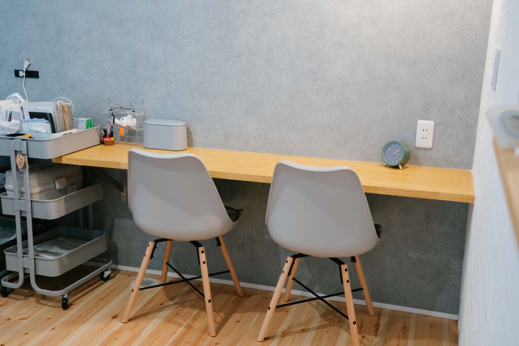 キッチン横に配したスタディースペース。将来はお子様の勉強机としても活用できそうです。