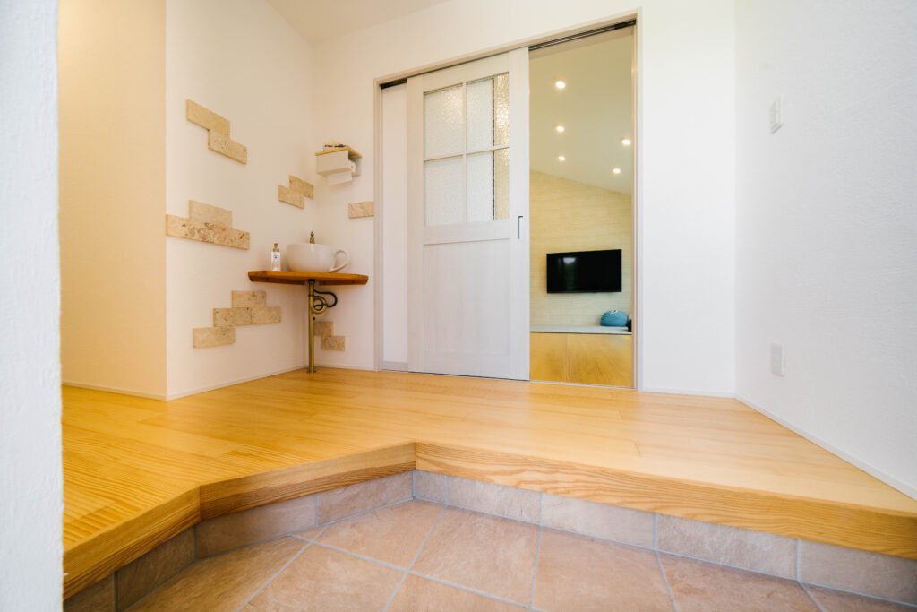 スーパーや学校などが近い生活に便利な場所にありながら、のどかな自然が広がる地域で暮らすご夫婦。ご主人が転勤族だったこともあり、「マイホームを構えるなんて夢にも思わなかった」といいますが、ご主人が転職することになり、定住の地として選んだのは奥様の地元。これをきっかけに、マイホーム建築を考えはじめたそうです。条件に合う土地を手に入れ、ハウスメーカーをどこに依頼するか悩んでいたときに、ちょうどSAKAIのDMがポストに届いたそうで、展示会へご来場くださいました。