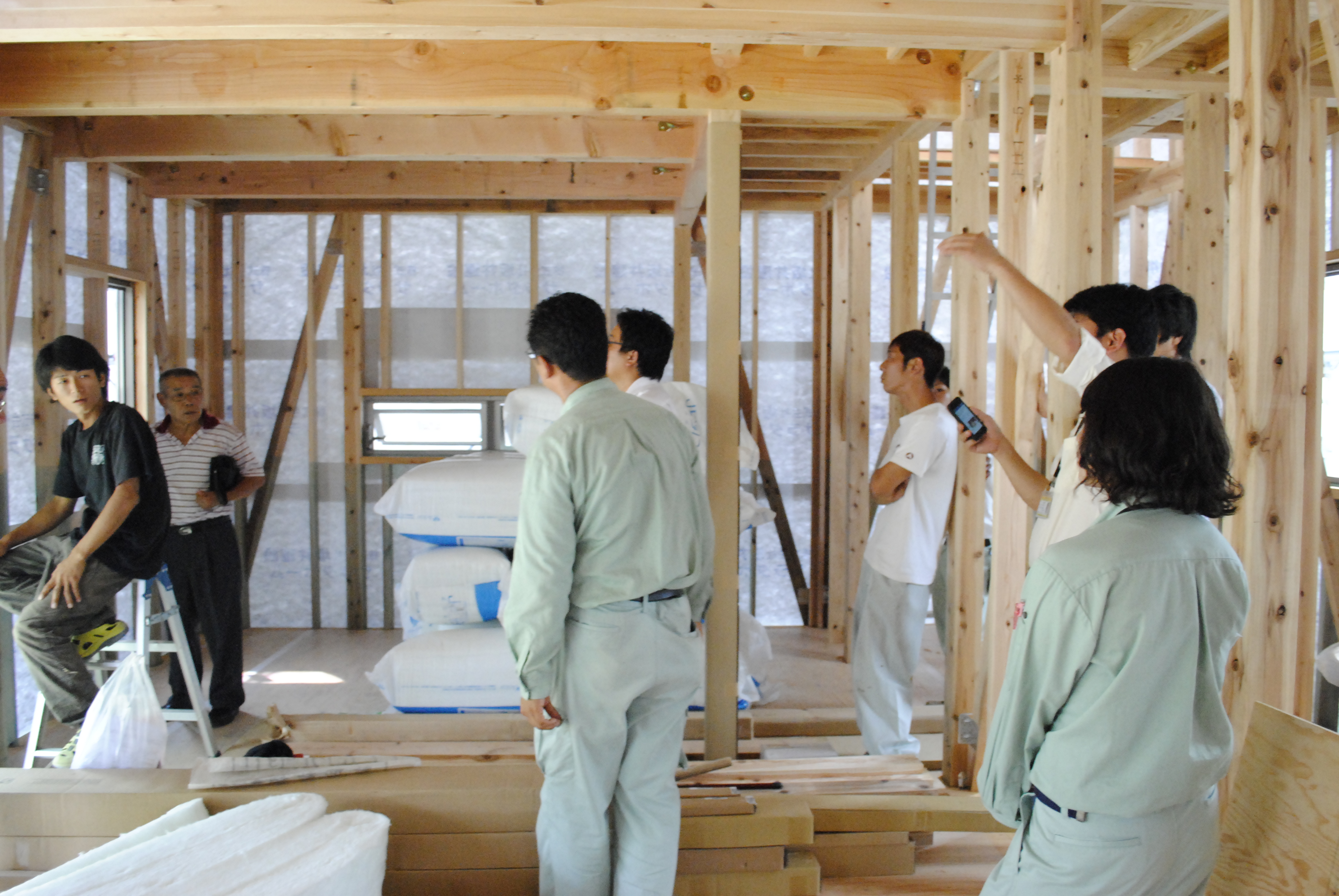 大工さんとの技術の共有、大工勉強会を行いました。 WRITER 石田 大貴 2013/07/27 こんにちは!i-DEAR事業部の石田です。 今日は、他社がやっていない当社の取り組みをお伝えします。 坂井建設・サラダホームでは毎月1回、実際に現場に入っていただく大工さんに集まっていただき、 それぞれの施工技術の統一を目的として「大工勉強会」を行っています。 今日は、その大工勉強会に、サラダホームのホームページに掲載する写真を撮影しに、一緒に同行しました。 今日のテーマは「断熱材の施工について」。 東京からメーカーの講師の方に来ていただき、施工の際の注意点などを教えていただきました。 次の記事を読む